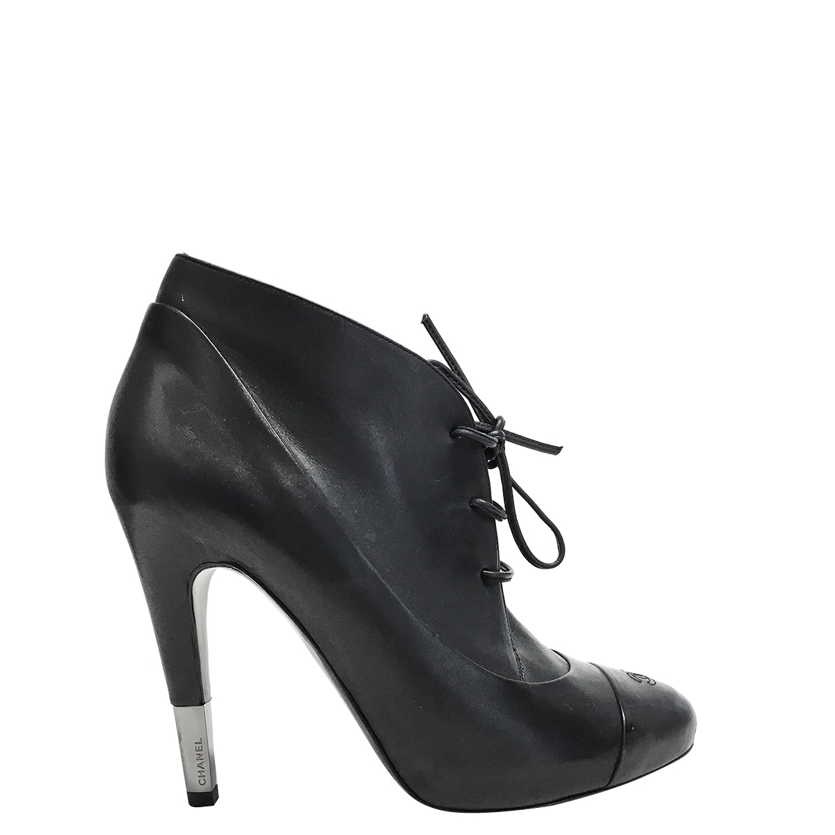 Bota Chanel Ankle Boot Preta Couro Tam. 38,5