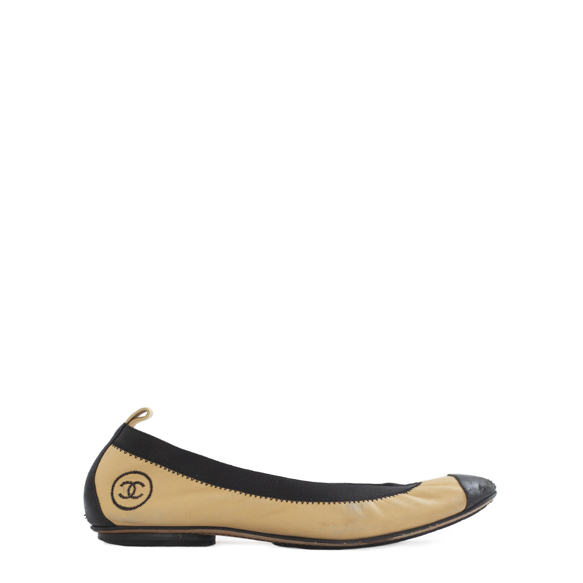 Sapatilha Chanel bicolor bege e preto Tam. 39