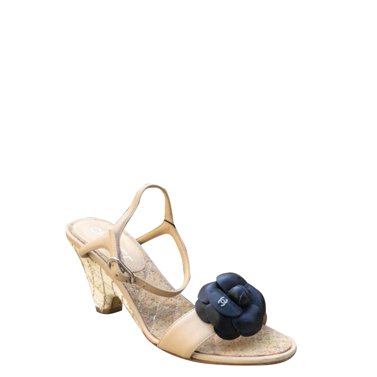 Sandália Chanel Bege e Preta Flor Tam. 36,5