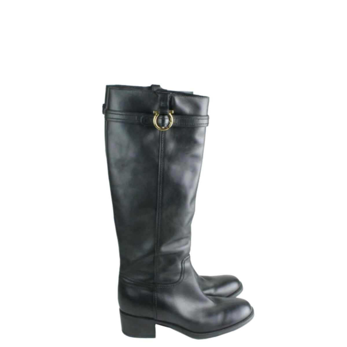 Bota Salvatore Ferragamo Preta c/ Cano Longo e Ferragem Prata Tam. 38 Br