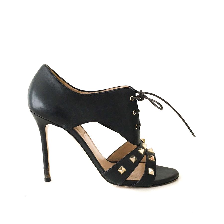Sandália Valentino Preta com Salto Fino Tam. 36,5