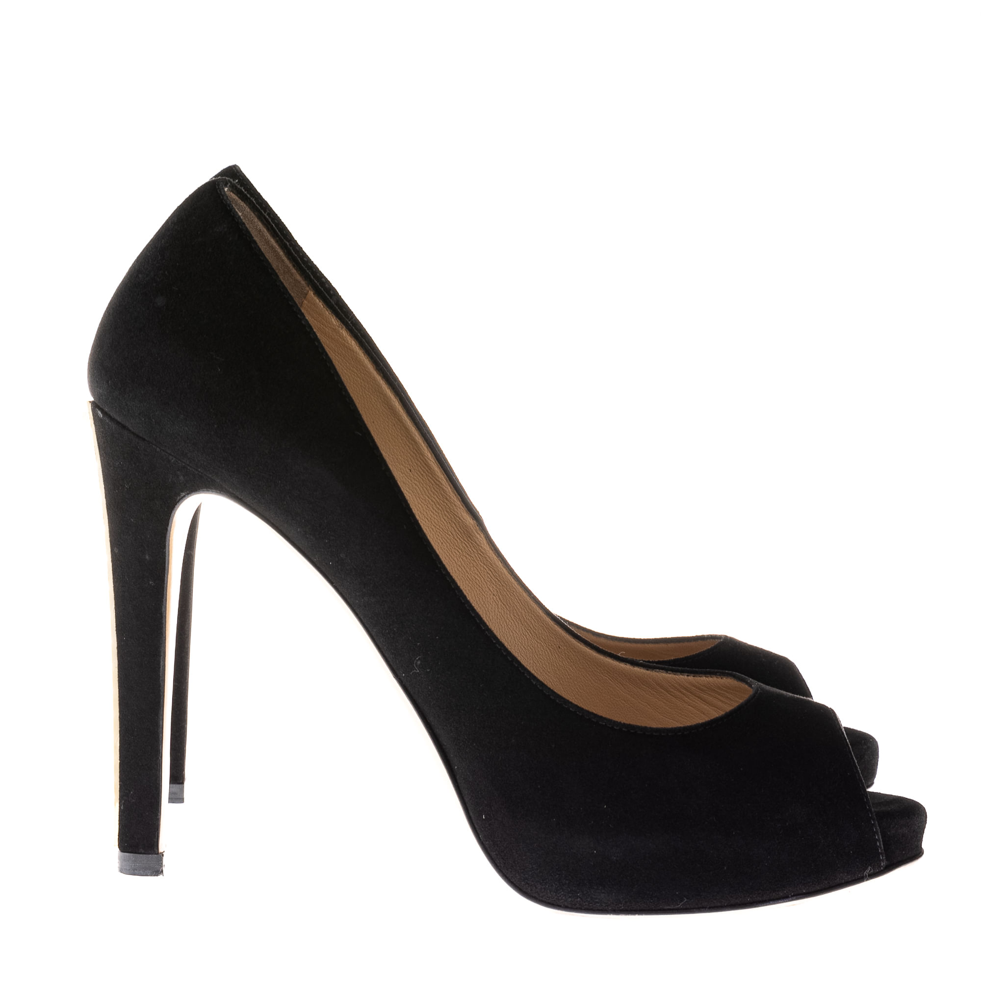 Peep Toe Chanel Couro Preto