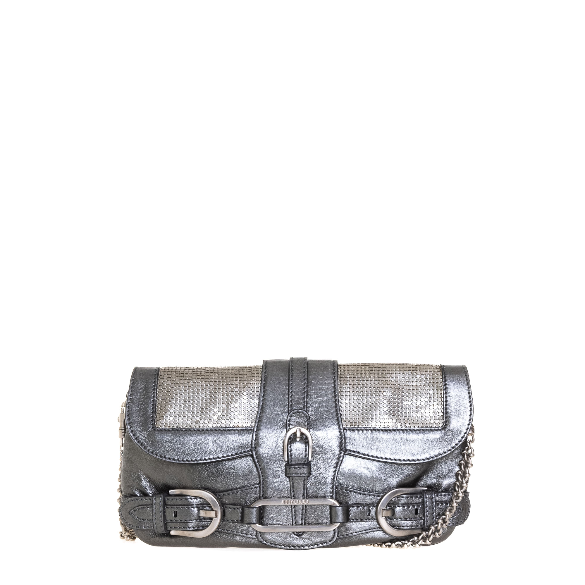 Bolsa Jimmy Choo Couro e Malha Metálica