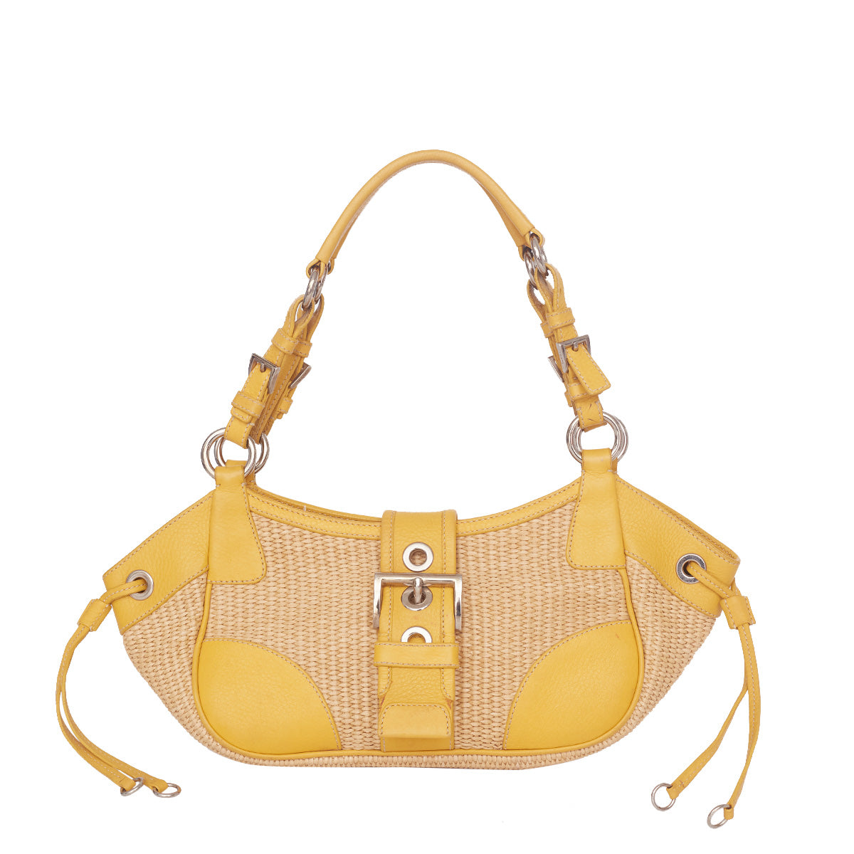 Bolsa Prada em Palha c Detalhes em Couro Amarelo