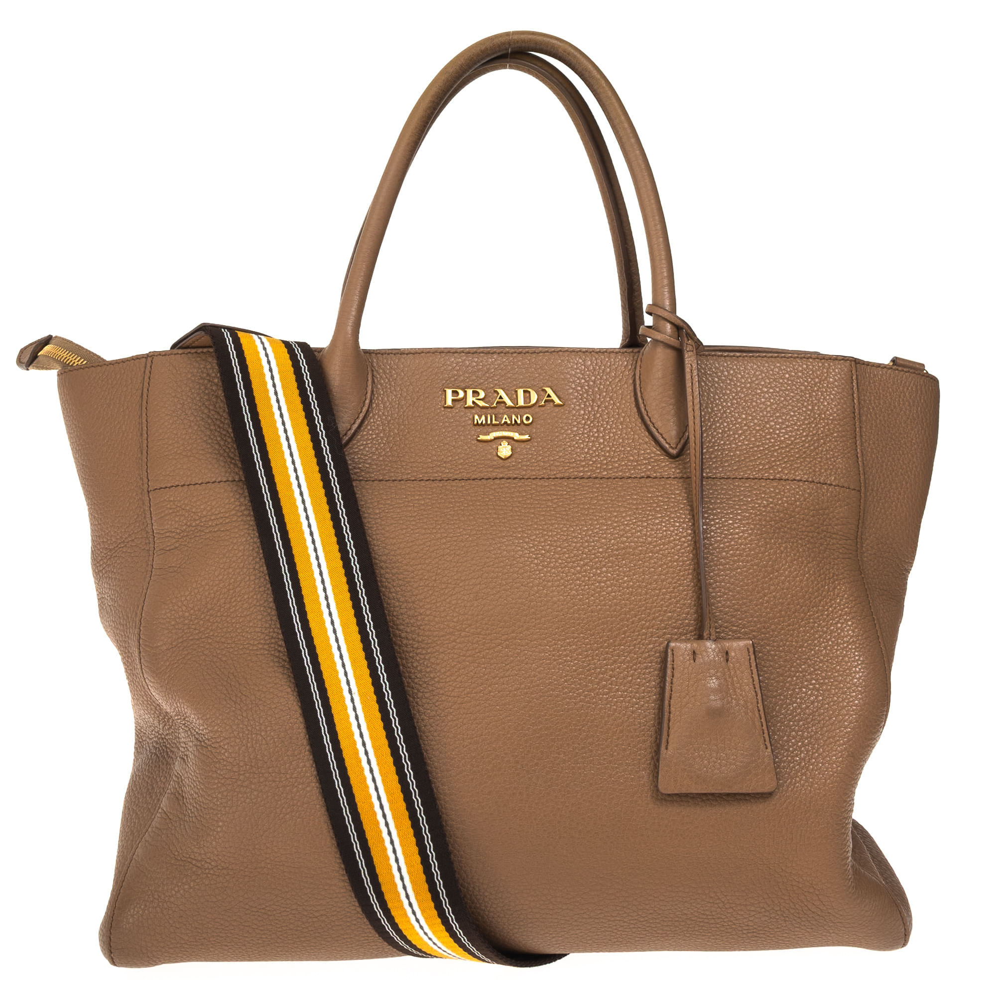 Início / Loja / Bolsas / Com alças / Bolsa Prada Tote Couro Daino Caramelo