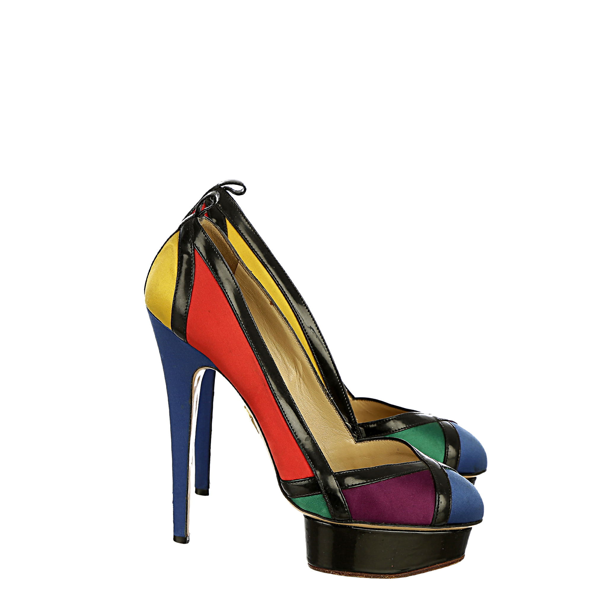 Pump Charlotte Olympia Cetim Cores Verde, Vermelho, Azul e Amarelo