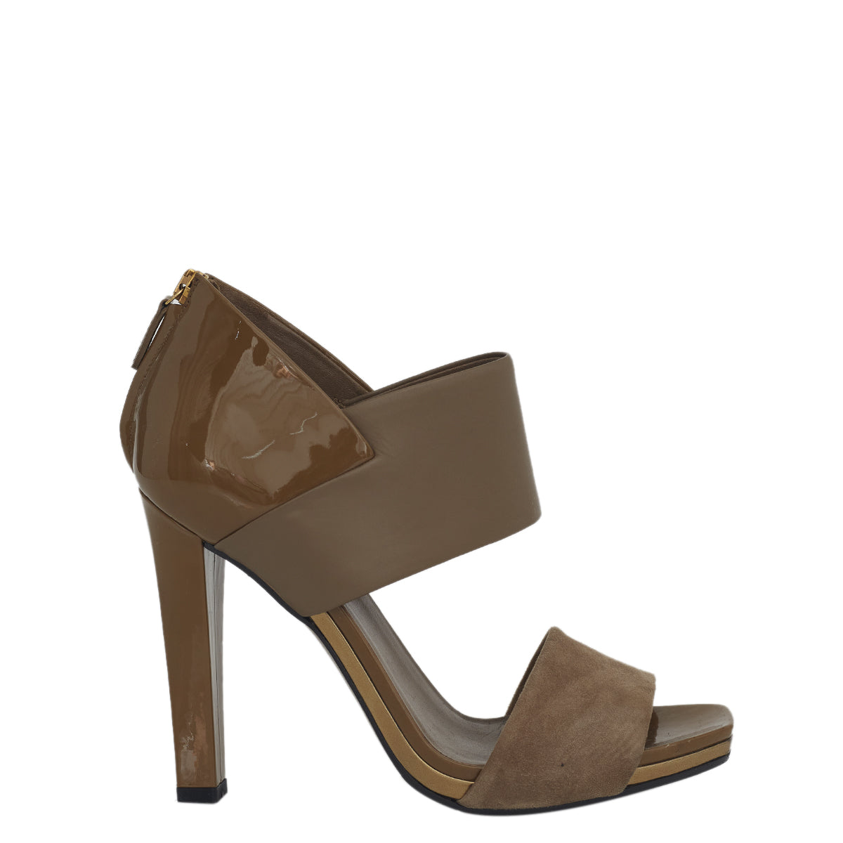Início / Loja / Sapatos / Sandália / Sandália Gucci Camurça Couro e Verniz Verde Oliva Tam 38