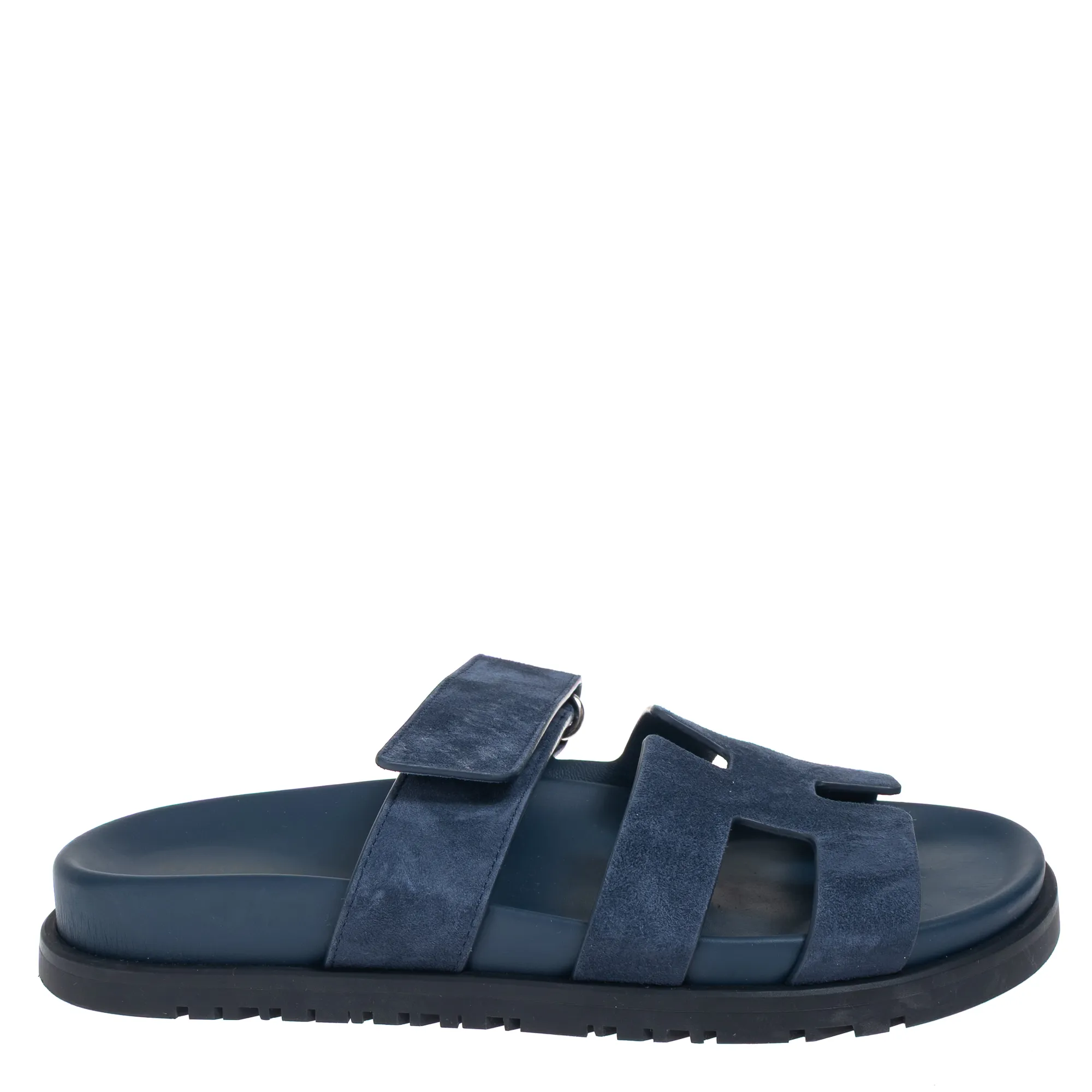 Sandália Hermès Rasteira Chypre Camurça Marinho