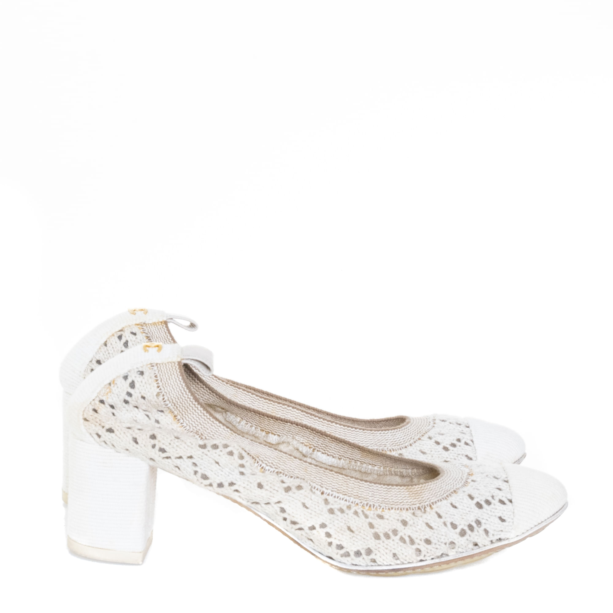 Início / Loja / Sapatos / De salto / Sapato Chanel Elástico Crochê Branco