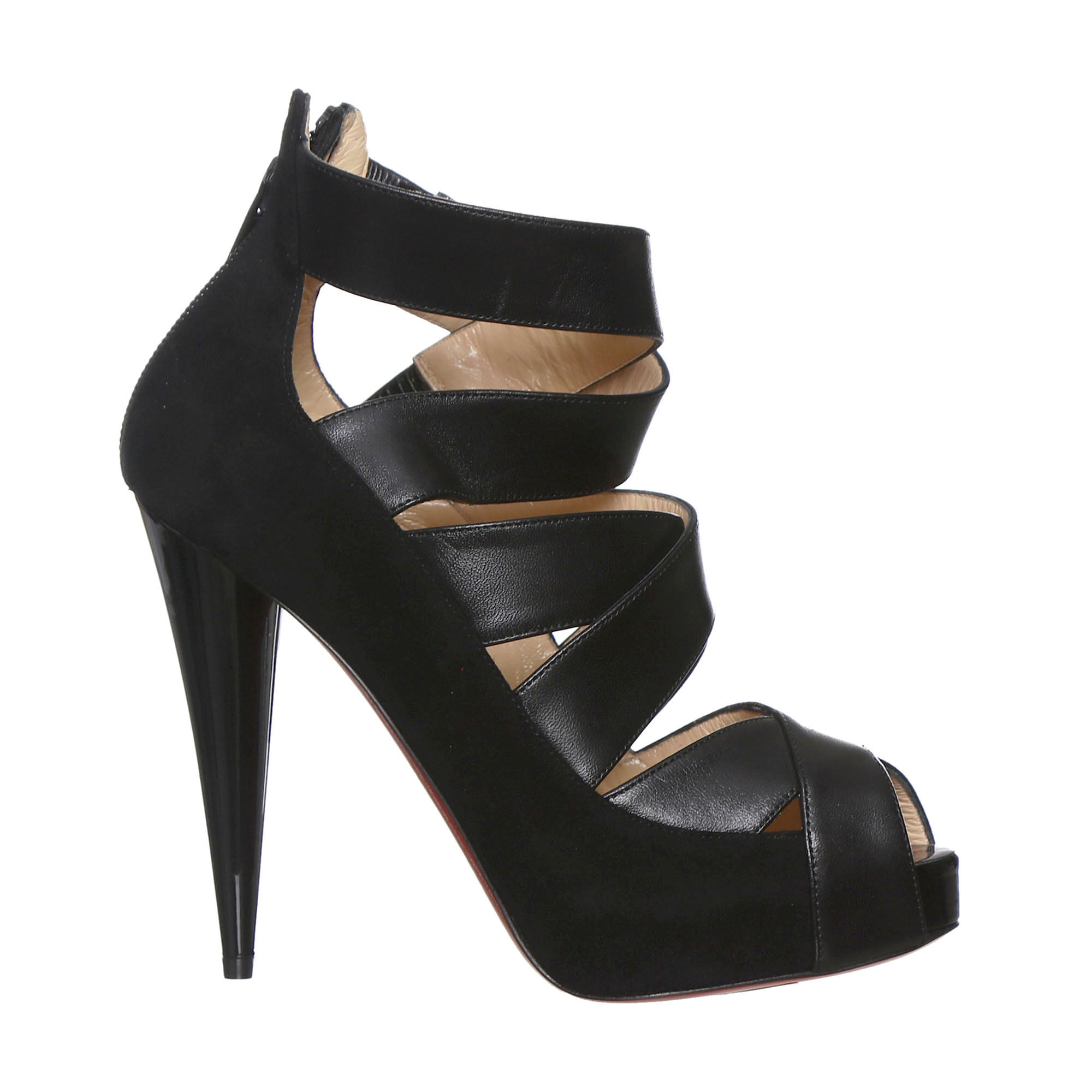Sapato Louboutin Peep Toe Camurça e Couro