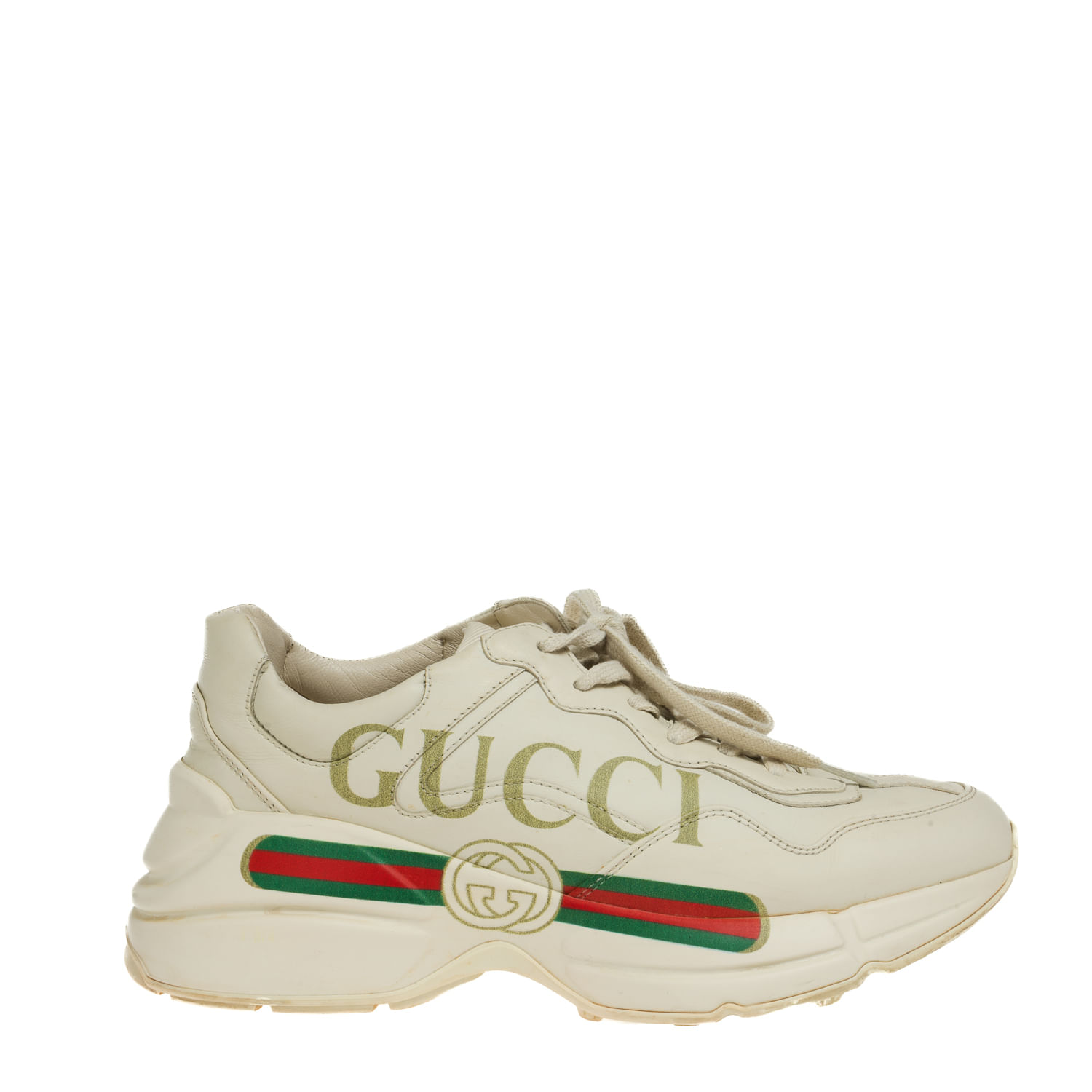 Tênis Gucci Rhyton Logo Couro Creme